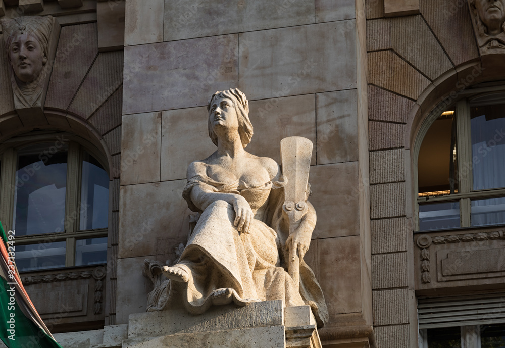 Facade decorations of The Hungarian National Bank’s building, Budapest, Hungary.