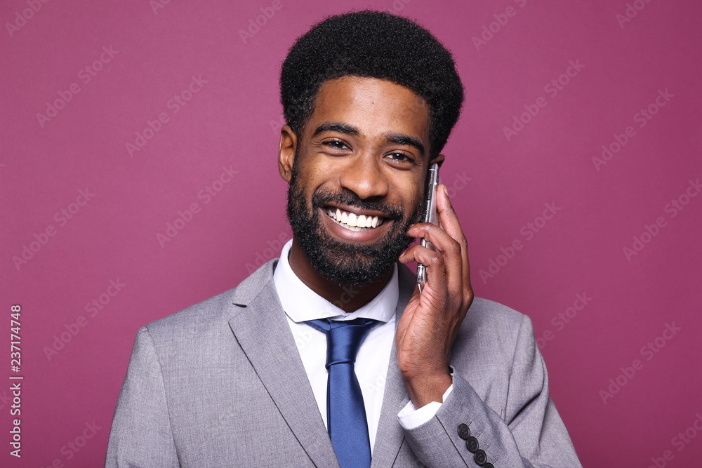 Beautiful black man in front of a colored background