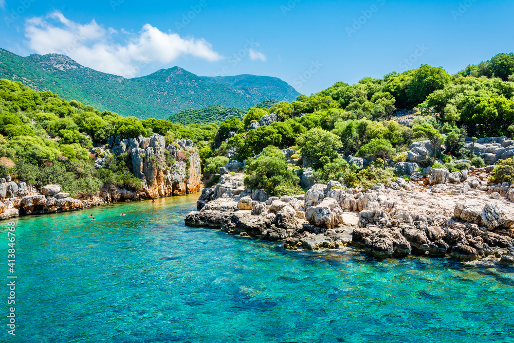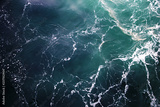 Ocean view from the top. Blue-green waves, storm, sea surface.