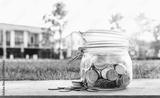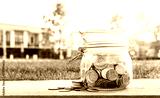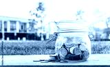 Money in glass jar for home loan