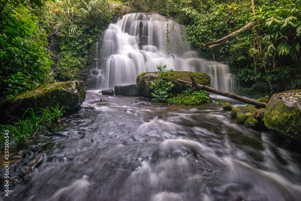 The beautiful landscape of Mun Daeng waterfalls in rainforest of Phu Hin Rong Kla national park, Phitsanulok province of Thailand.