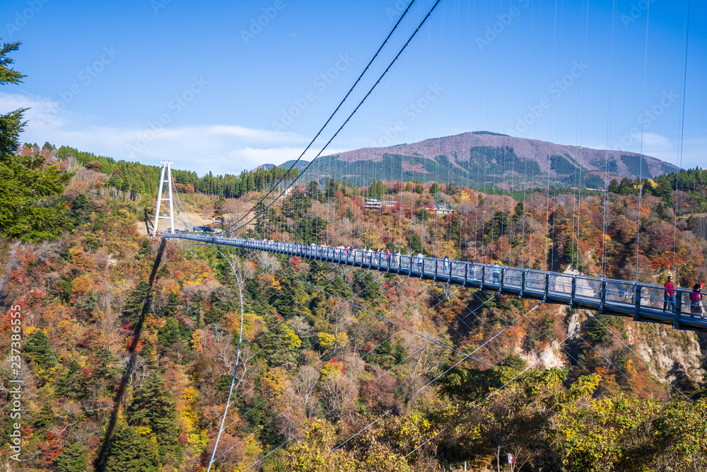 Kuju, oita, Japan, November 11, 2018: Kokonoe Yume Suspension Bridge (otsurihashi), the most highest suspension bridge for walkway in Japan.