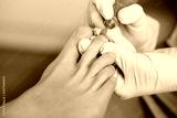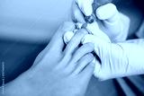 Chiropodist treating a patient's foot, pedicure treatment