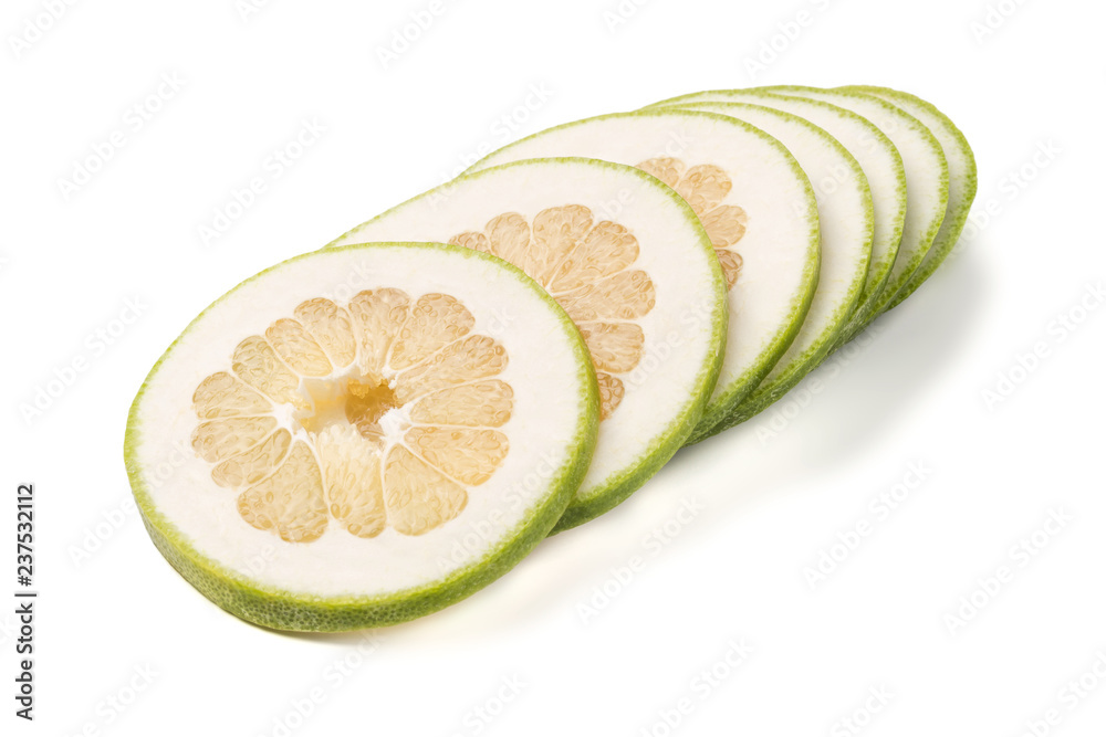 Sliced Green Grapefruit (Jaffa Sweetie), isolated on white background