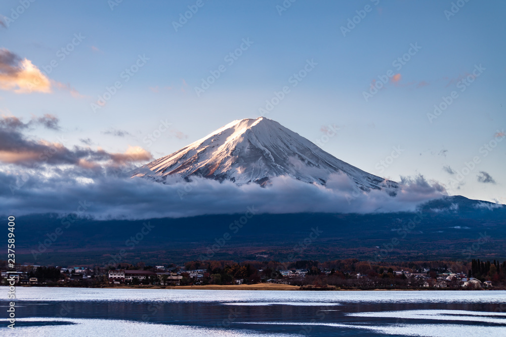 close up mount fuji from lake kawaguchi side, Mt Fuji view from the lake