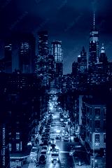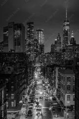 View of the Lower East Side and Financial District at night, from the Manhattan Bridge in New York City