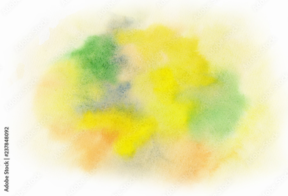 Painting. Red yellow watercolor paint on white background sheet of paper