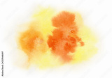 Painting. Yellow orange red watercolor paint on white paper sheet