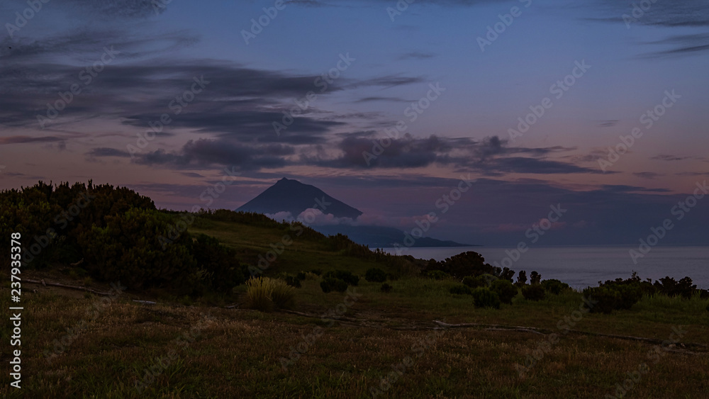 Blick von Castelo Branco auf Faial auf den Pico an einem Sommerabend