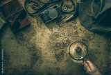 old map and vintage travel equipment / expedition concept or treasure hunt.