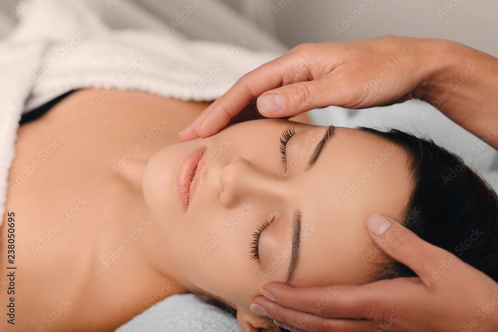 young woman receiving a face massage at the spa