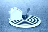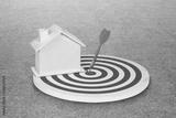 Small house on dart board in the green field.