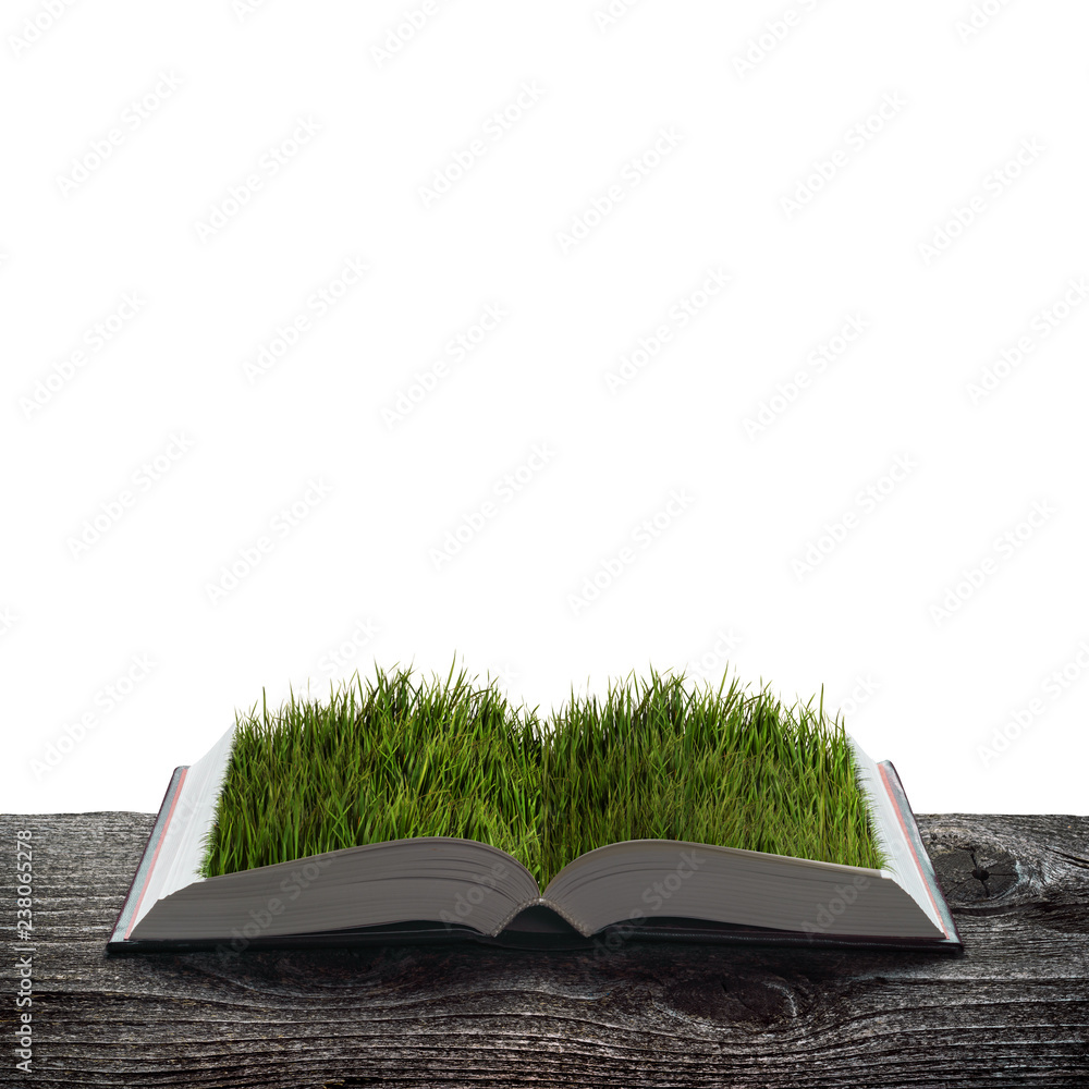 Fresh green grass on the pages of an open book