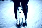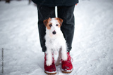 Beautiful puppy of breed Jack Russell Terrier in the winter forest