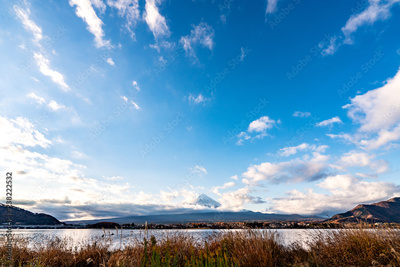 close up mount fuji from lake kawaguchi side, Mt Fuji view from the lake