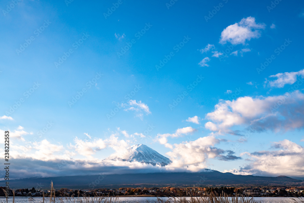 close up mount fuji from lake kawaguchi side, Mt Fuji view from the lake