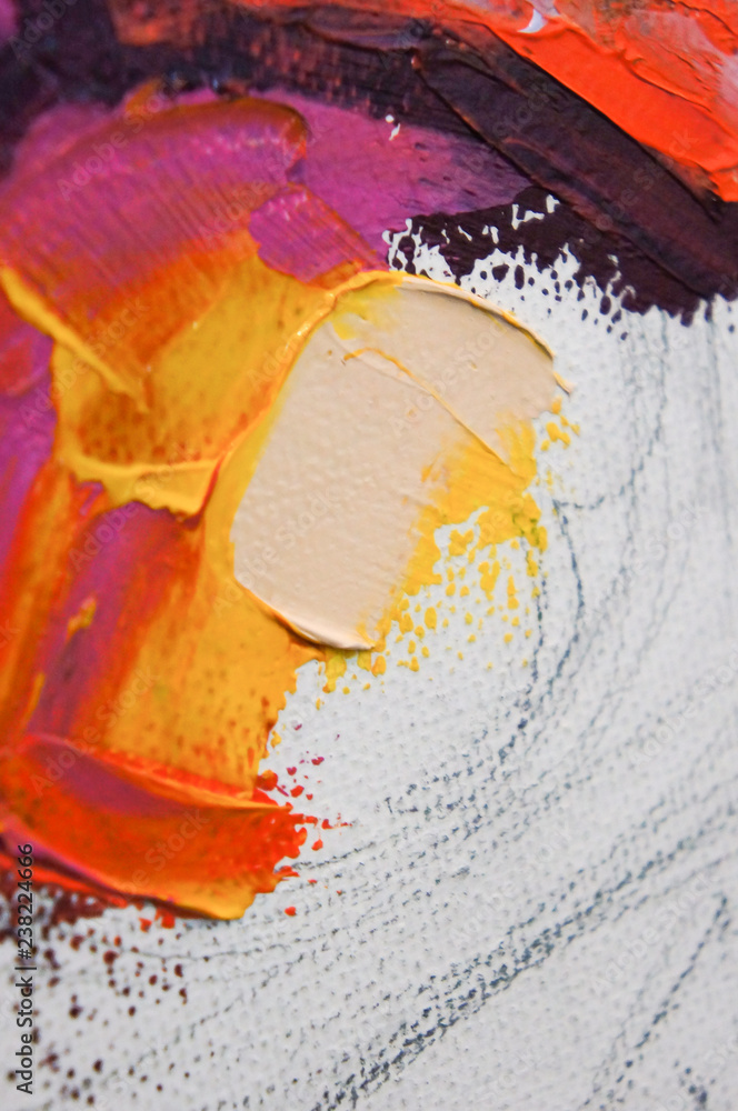 Fragment. Multicolored texture painting. Abstract art background. oil on canvas. Rough brushstrokes of paint. Closeup of a painting by oil and palette knife. Highly-textured, high quality details.