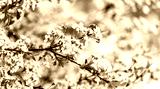 Blossom tree over nature background. Beautiful nature scene with blooming tree, sun and snow. Easter Sunny day. Spring flowers. Springtime. Selective focus