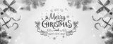 Merry Christmas Typographical on white background with gift boxes, fir branches, red decoration. Xmas and New Year card, bokeh, light. Flat lay, top view