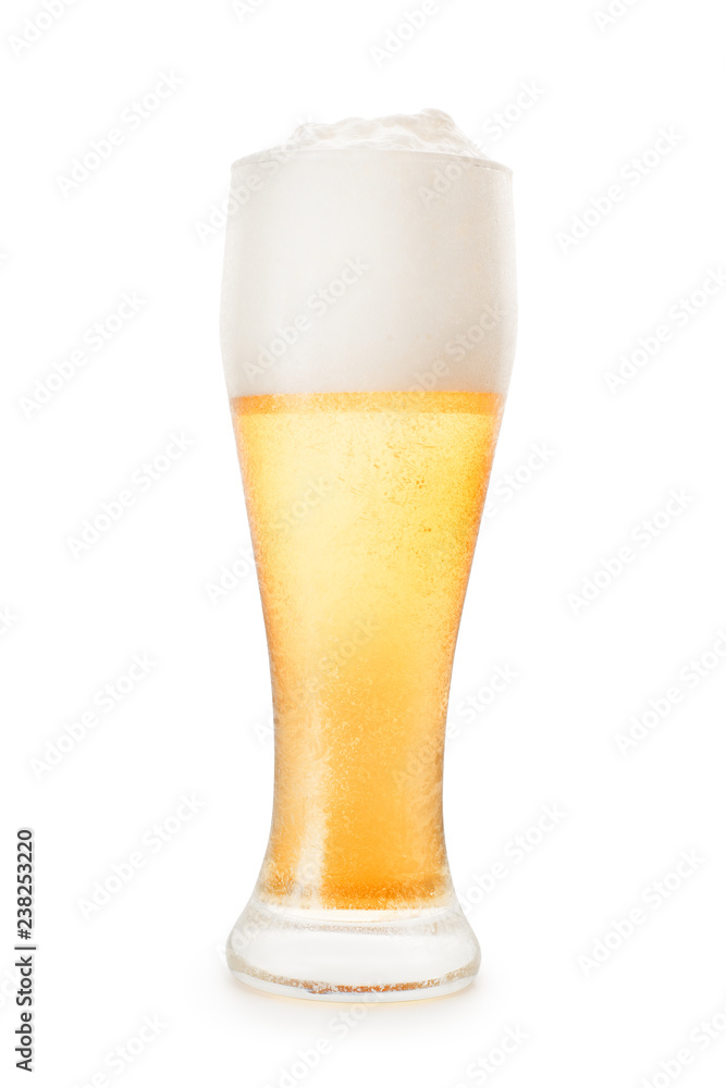 Large frosted glass of beer isolated with clipping path