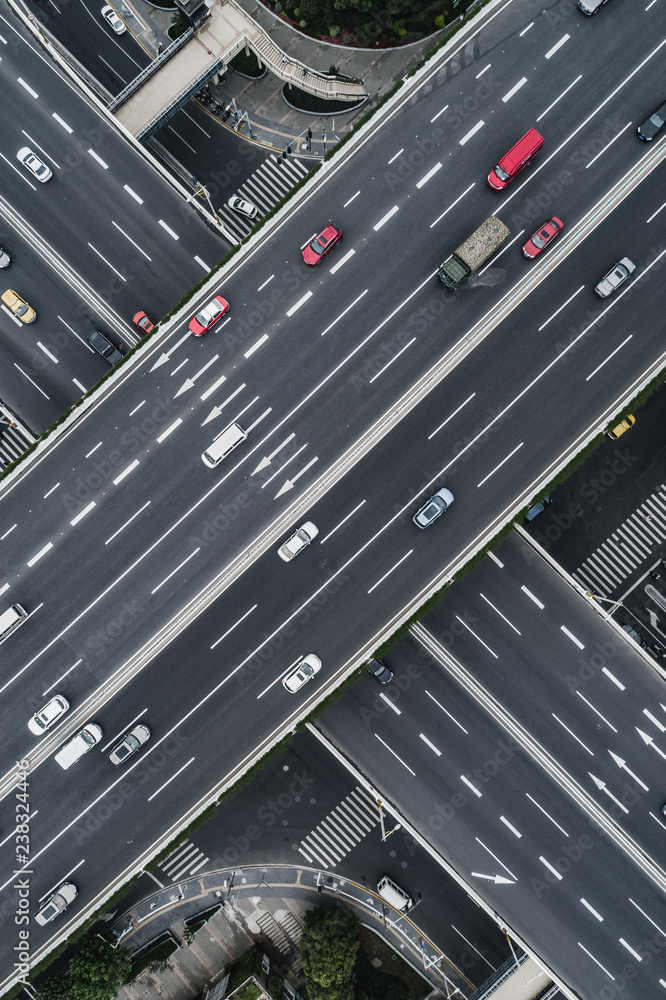 Aerial view of highway and overpass in city