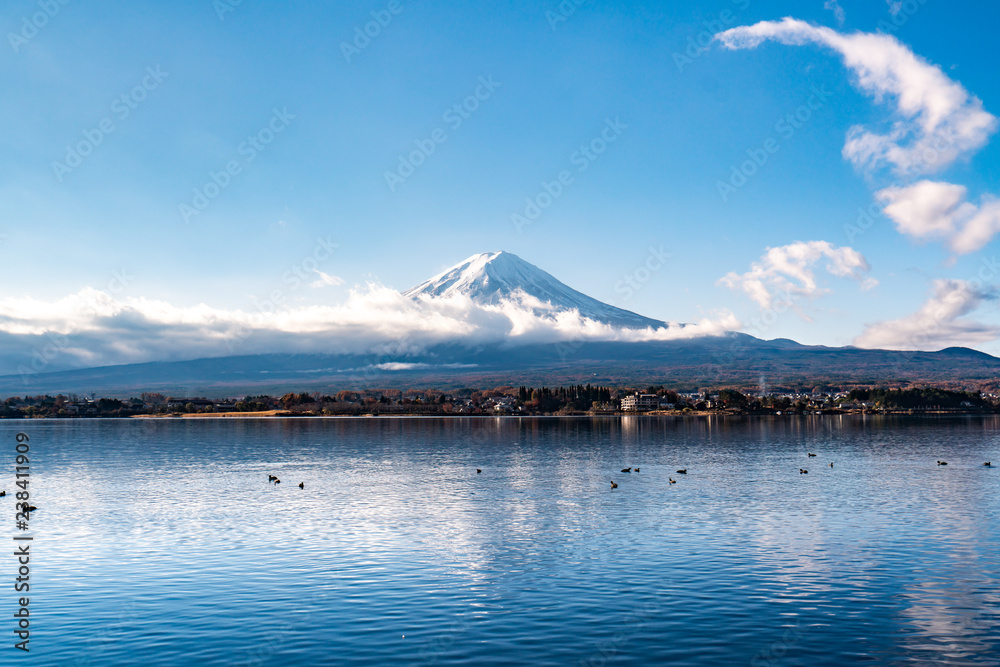 close up mount fuji from lake kawaguchi side, Mt Fuji view from the lake