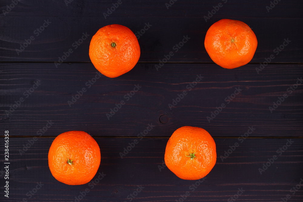 A few tangerines on a dark background