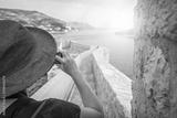 Female tourist taking pictures of Dubrovnik