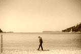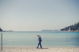 Tourist walking slowly on the beach