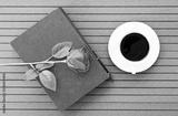 Coffee time with book,coffee cup,red rose