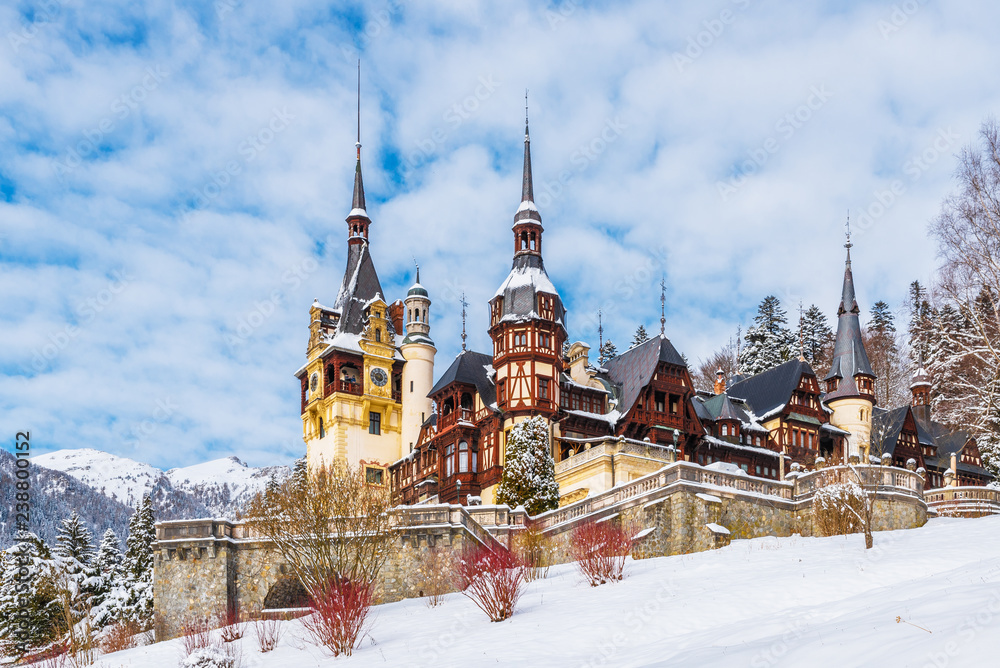 Peles castle Sinaia in winter season, Transylvania, Romania