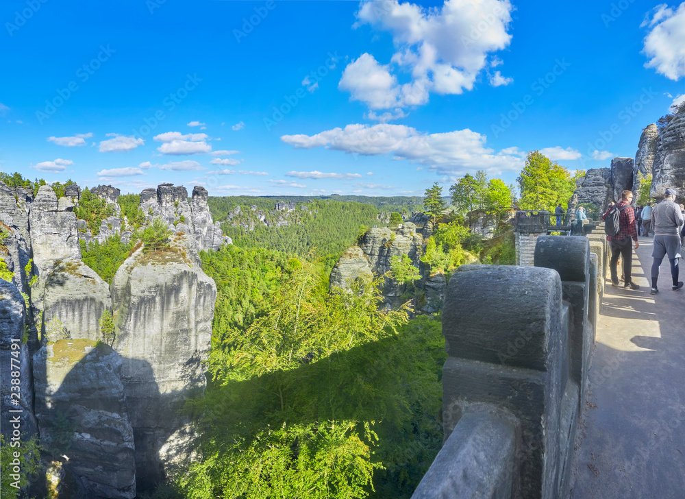 Blick auf die Basteibrücke, Elbsandsteingebirge, Sächsische Schweiz.