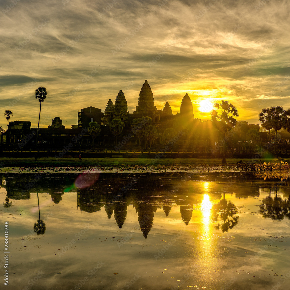 HDR image of Sunrise of Angkor Wat Temple, Siem Reap, Cambodia