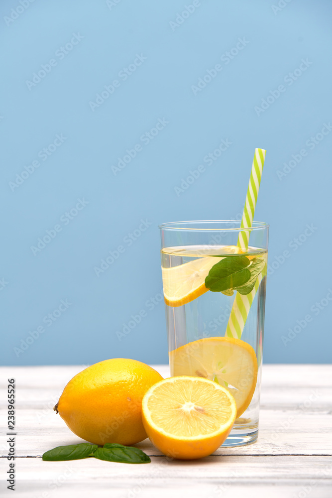 Woda z cytryną w pojemniku