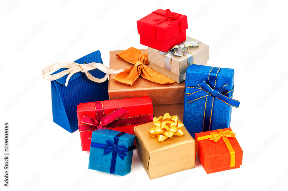 different gift boxes on white
