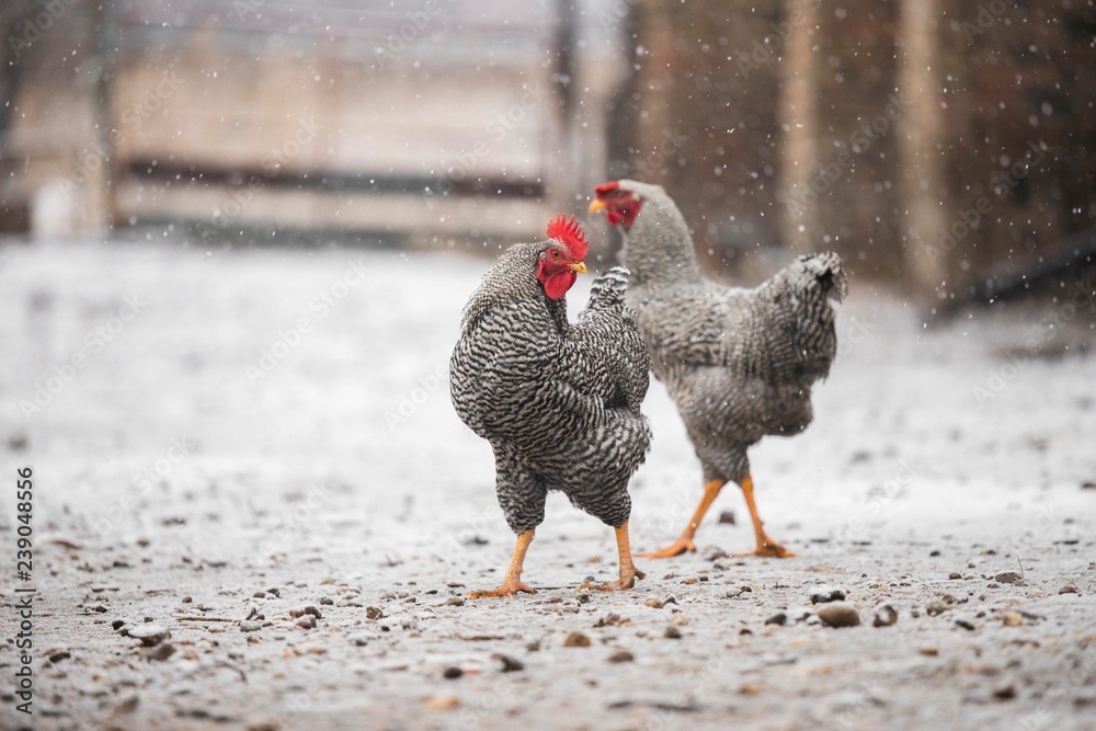 chicken rooster isolated on snow
