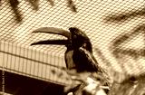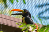 Happy and cheery Collared aracari (Pteroglossus torquatus) toucan is a near passerine bird.