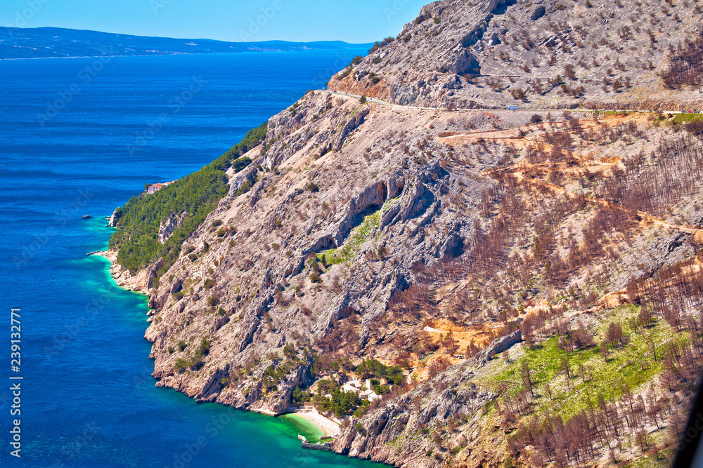Scenic road in Makarska riviera Biokovo cliffs waterfront view