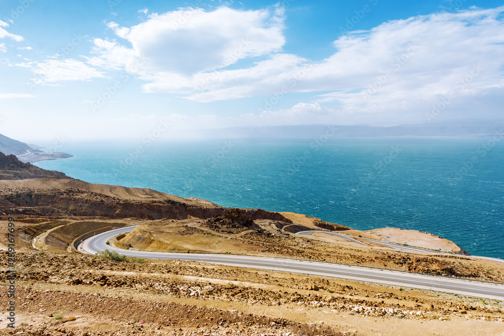 The road along the shore of the Dead sea - Jordan.