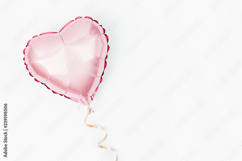 Single Balloon of heart shaped foil on white background. Love concept. Holiday celebration. Valentine's Day or wedding/bachelorette party decoration. Metallic balloon
