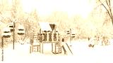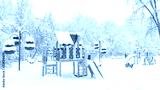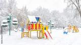 Snowy playground in winter, Moscow, Russia