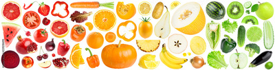 Collection of color fruits and vegetables on white