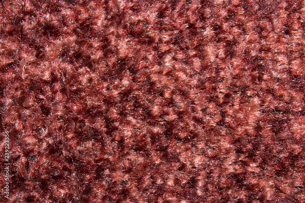 The texture of the red-brown carpet.The carpet is burgundy in color.Fabric for furniture paneling.