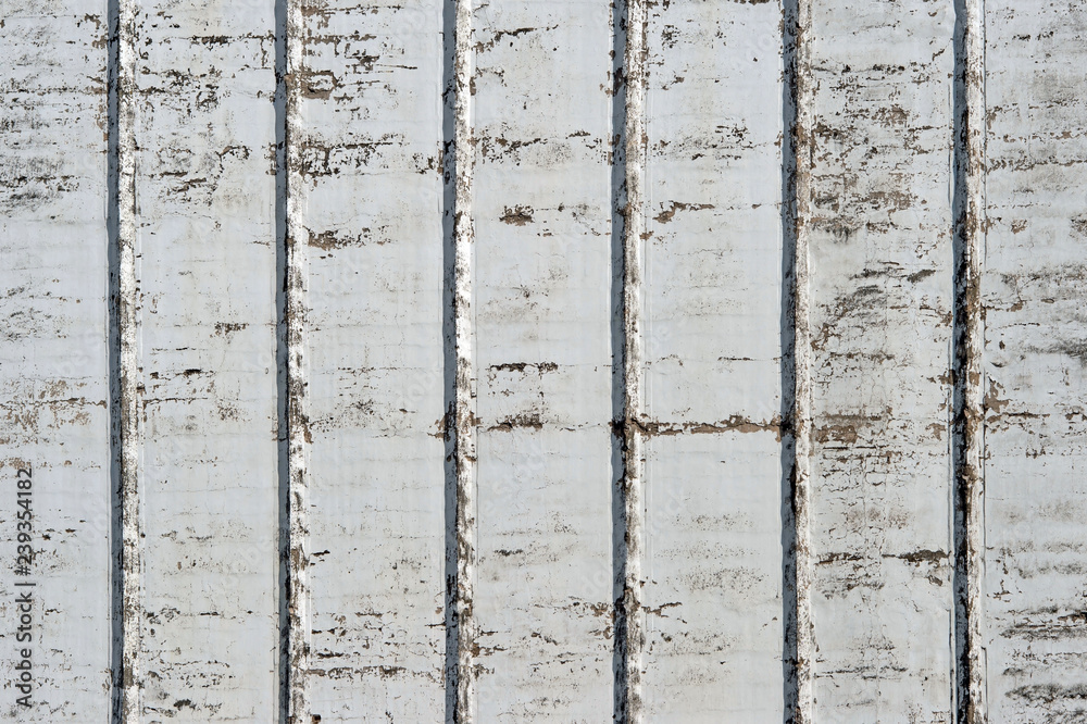 A white wall with a rough texture of a large industrial building with ribs and scuffs to the concrete. Background