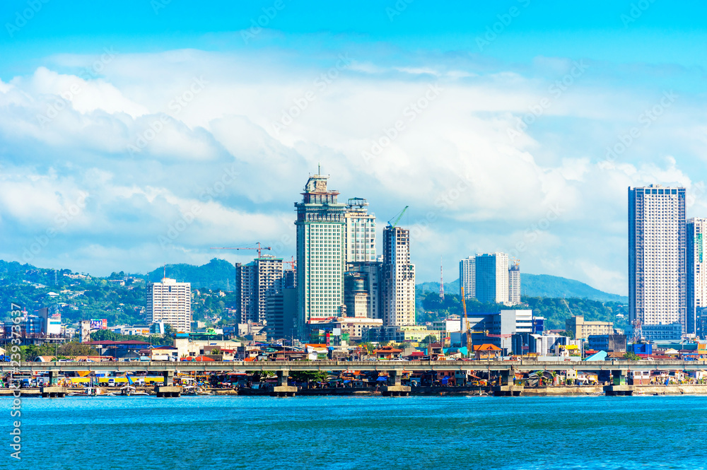 View of the skyscrapers of the city Cebu, Philippines. Copy space for text.