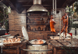 Grilled pig, roasted rabbit, lamb traditional, hot tandoor grill. Hot Meat dishes