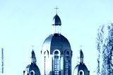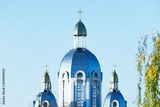 the tip of the Christian church, a dome with a cross against the blue sky
