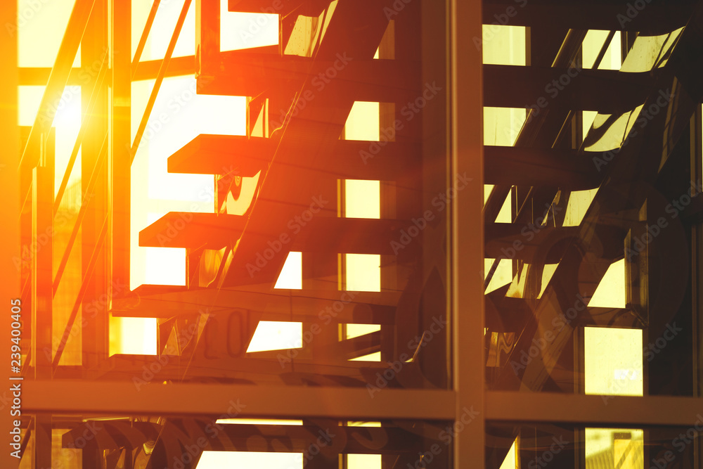 Stone staircase shining through the rays of the sun, modern architecture, rising to the top