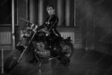 Sexy biker girl in a latex on a motorcycle