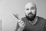 Man with hair loss problem on light background